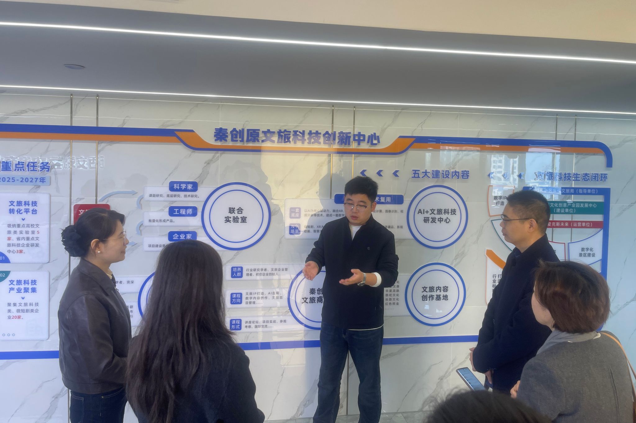 随后,师生一行来到十里沣河微短剧影视基地,走进西安数字内容产业研究院。在董事长谢飞等领导带领下,师生共同体验了VR/AR、裸眼3D等前沿视听技术,并走进三维动画和数字剪辑工作室,了解了影视制作的数字化流程。研究院同步展示了如何完全通过数字技术,搭建出古镇、医院、科幻空间等虚拟拍摄场景。看到剧本中的文字描述可以直接生成为“数字光影空间”,学生对编剧工作的可能性与市场需求有了全新的认识。这次“行走的课堂”,让书本上的理论知识变得鲜活,也让学生真切感受到了西安“微短剧之都”在数字影视领域的创作活力。