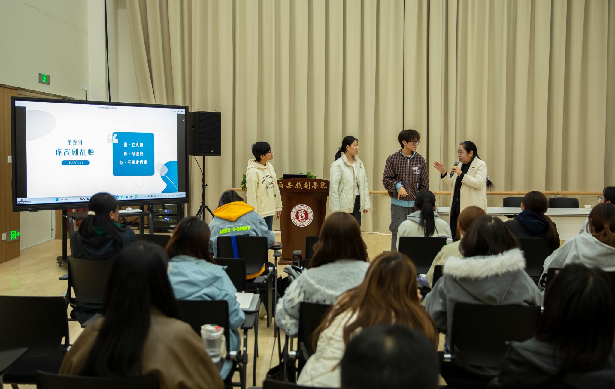 讲座由戏剧文学系负责人张体坤主持。讲座中,张勇老师结合自身丰富的创作经验,对谍战剧的创作技巧进行了系统阐述。她首先强调,谍战剧创作必须植根于真实发生过的历史,需要创作者进行大量的阅读与案例发掘,并明确了谍战剧创作中必须遵守的“红线”,这些原则为创作划定了严谨的边界。