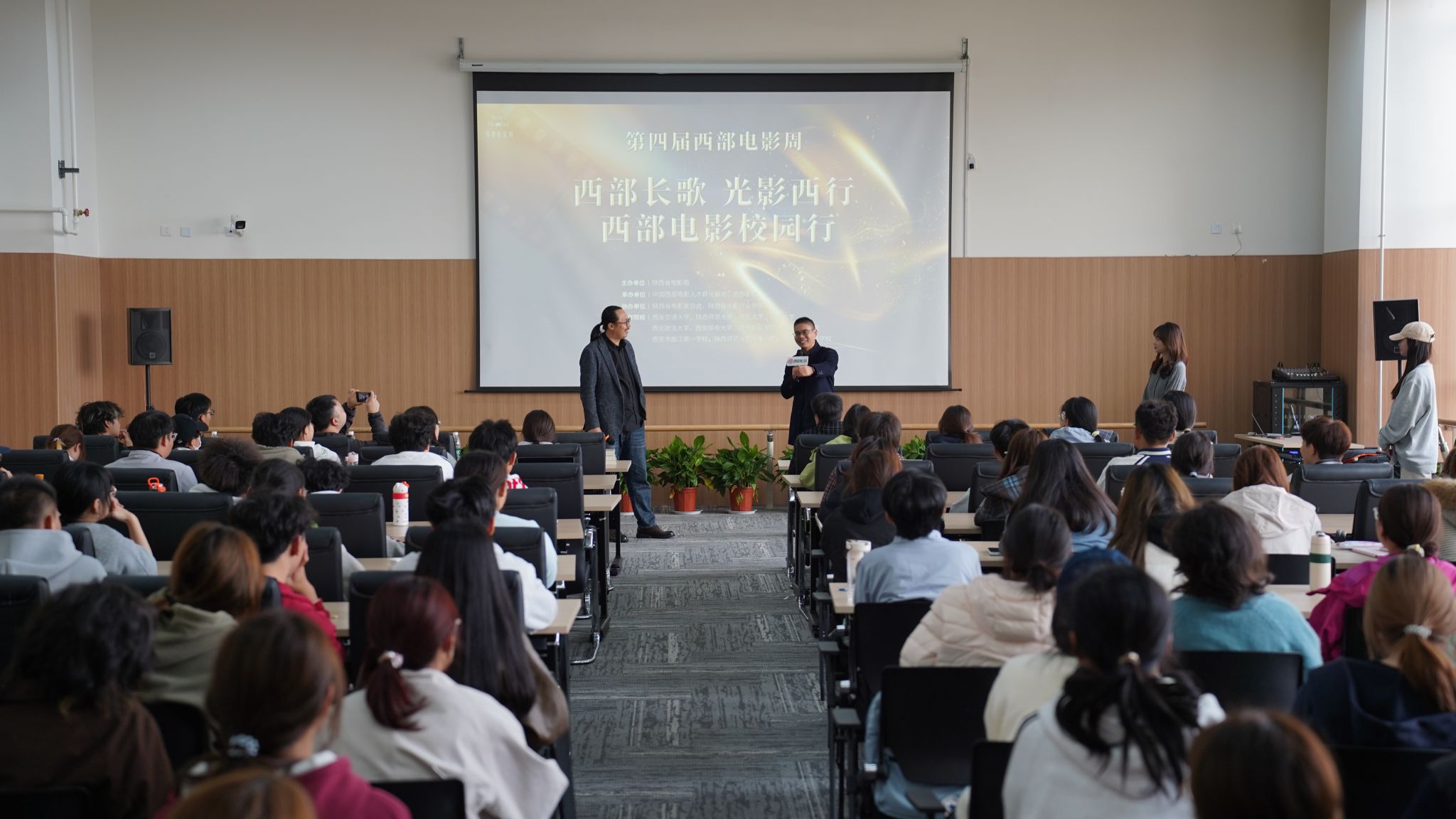 10月28日下午,由陕西省电影局主办的“第四届西部电影周·西部电影校园行”系列活动在我校戏剧教学楼隆重举行。著名作家柳青的人物传记电影《柳青》在此进行专场放映,影片导演田波亲临现场,与我校师生展开了一场关于电影艺术与文学精神的深度对话。我校及西安外国语大学教师代表共同参与了本次活动。